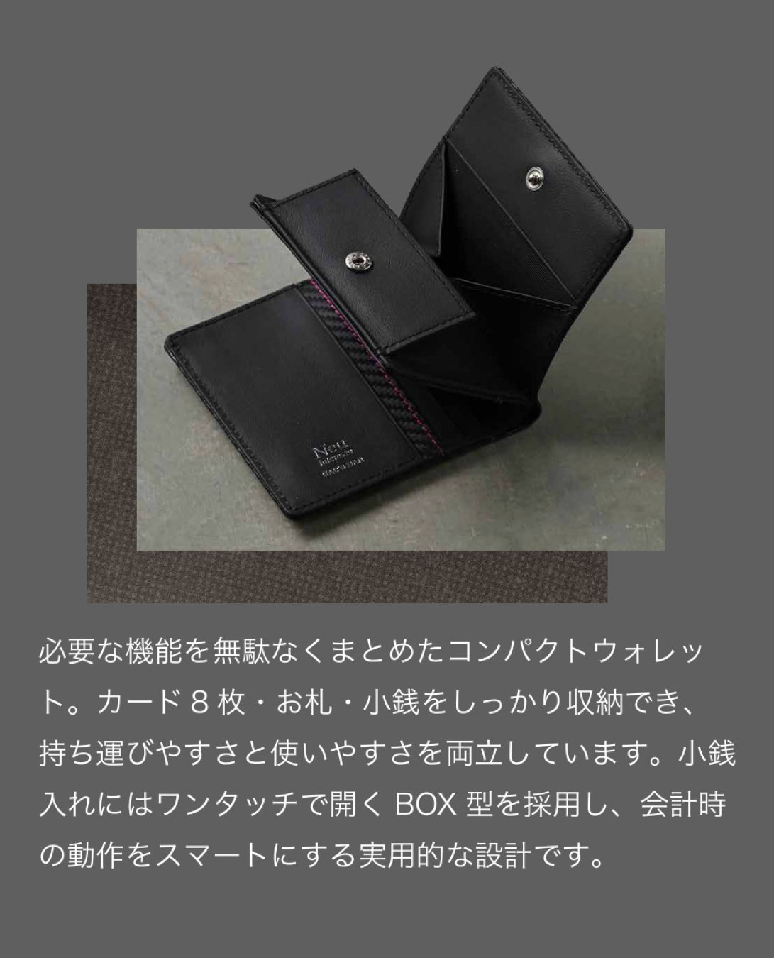 モータースポーツの世界で求められる精度や美しさを背景に、素材・設計・使いやすさを追求。日常の中でも“勝負の瞬間”を感じられるアイテムに仕上げました。