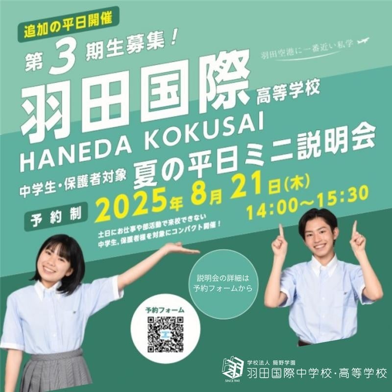 【羽田国際高等学校】「夏の学校説明会・体験会」の予約始まる!