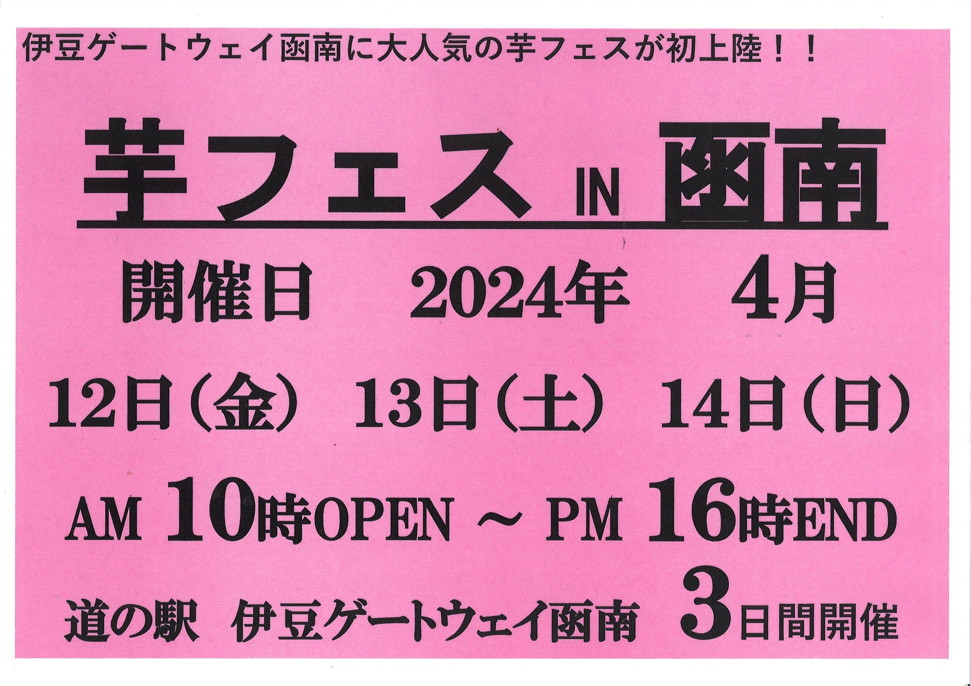 2024年4月12-14日芋フェスin伊豆ゲートウェイ函南開催決定!
