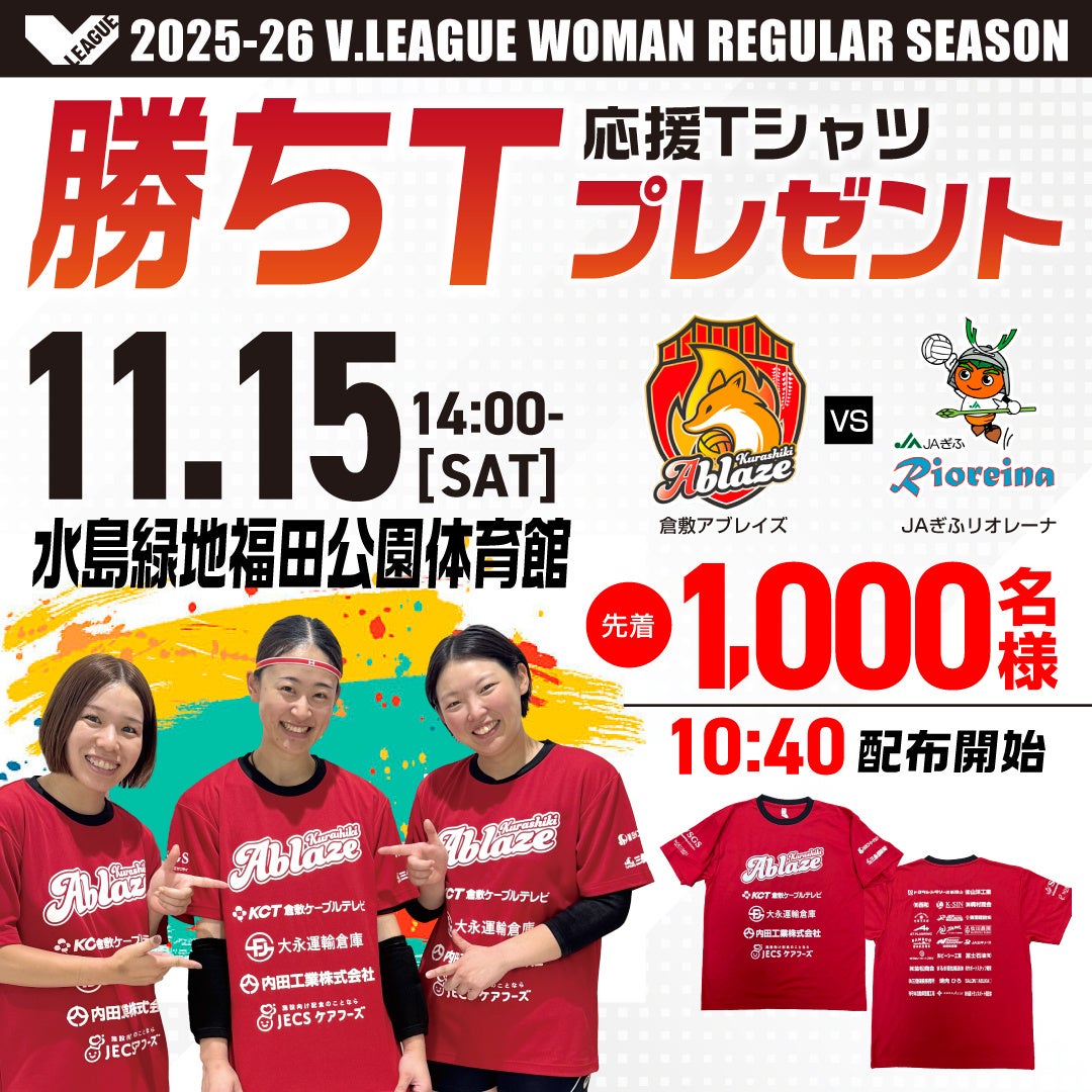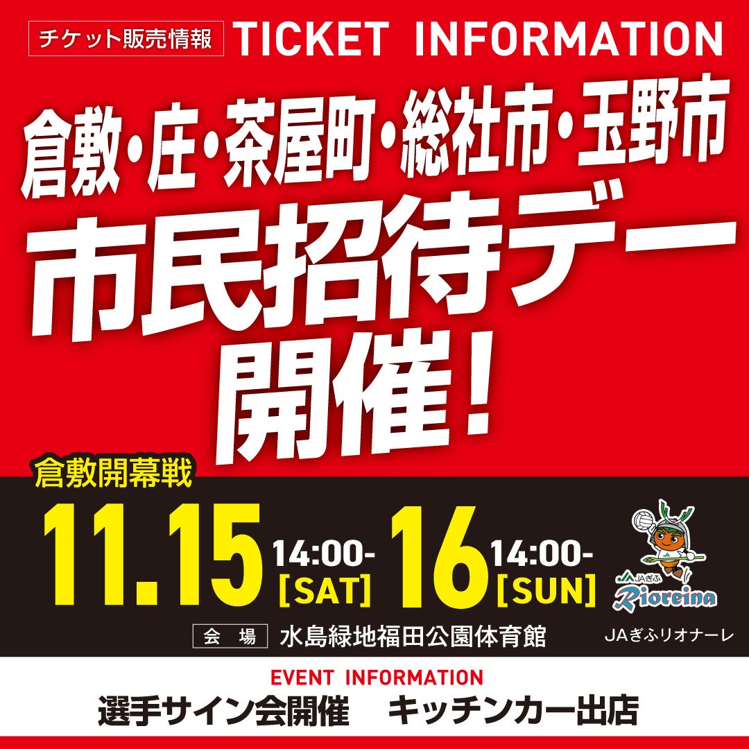 【倉敷開幕戦】11/15(土)・16(日) ホームゲーム開催!応援Tシャツ1,000枚配布・おかやま県民応援デー・市民招待デー・カスタムTシャツブース・スタンプラリーなどイベント盛りだくさん!