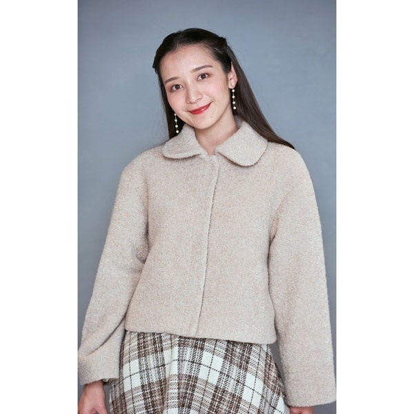 表情のあるループツイードを使用したジャケット。ハイウエストのボトムスとの相性も良いショート丈で、全体をすっきりとバランス良く見せてくれます。シンプルなデザインに、丸みのある襟が可愛らしい印象をプラス。両サイドにポケットが付いているのも嬉しいポイント。