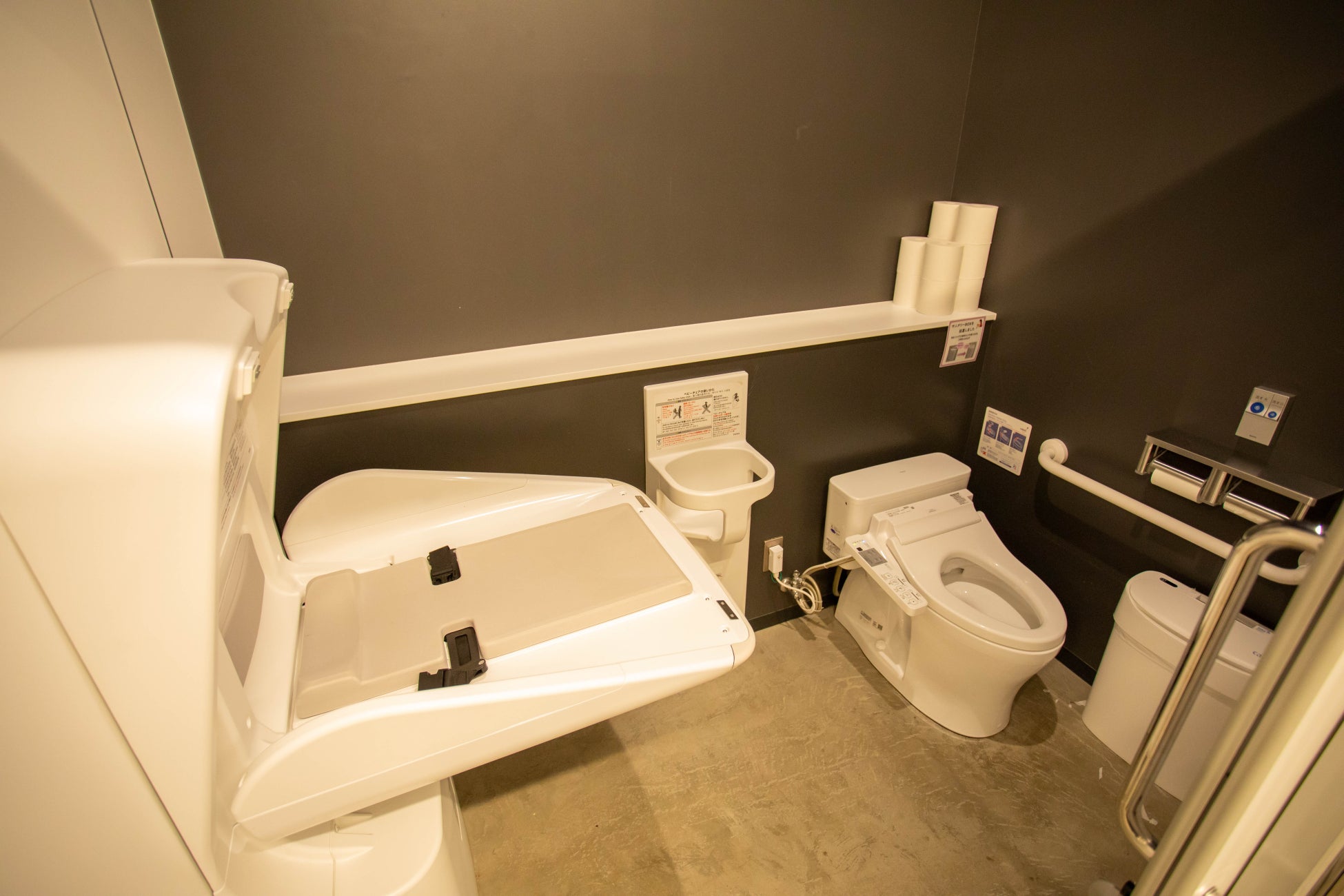 ユニバーサルシートのあるトイレは少ないので、余裕を持って移動する必要があります。