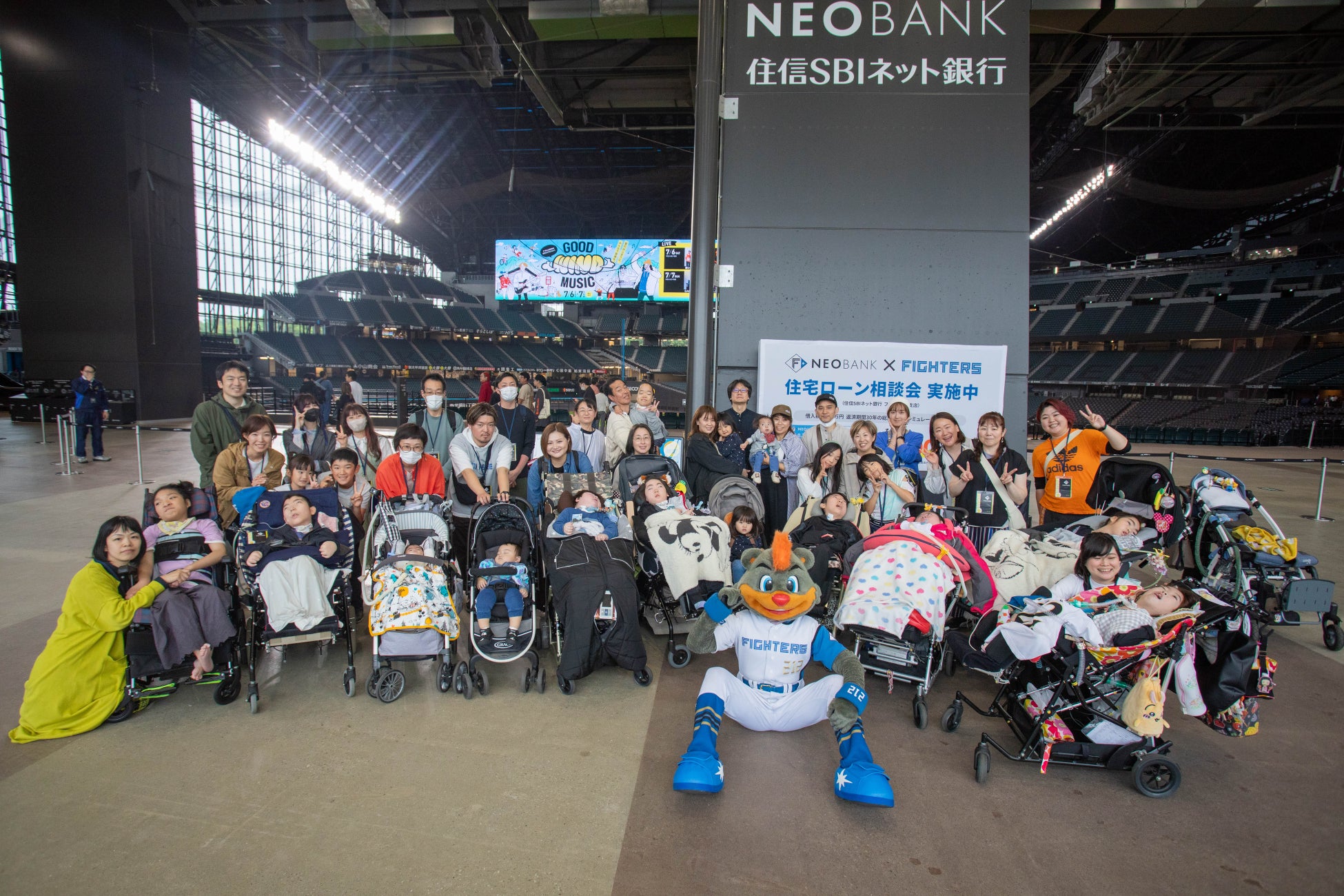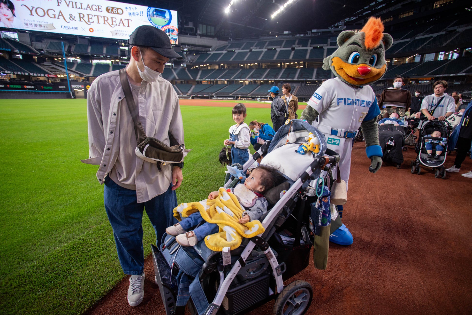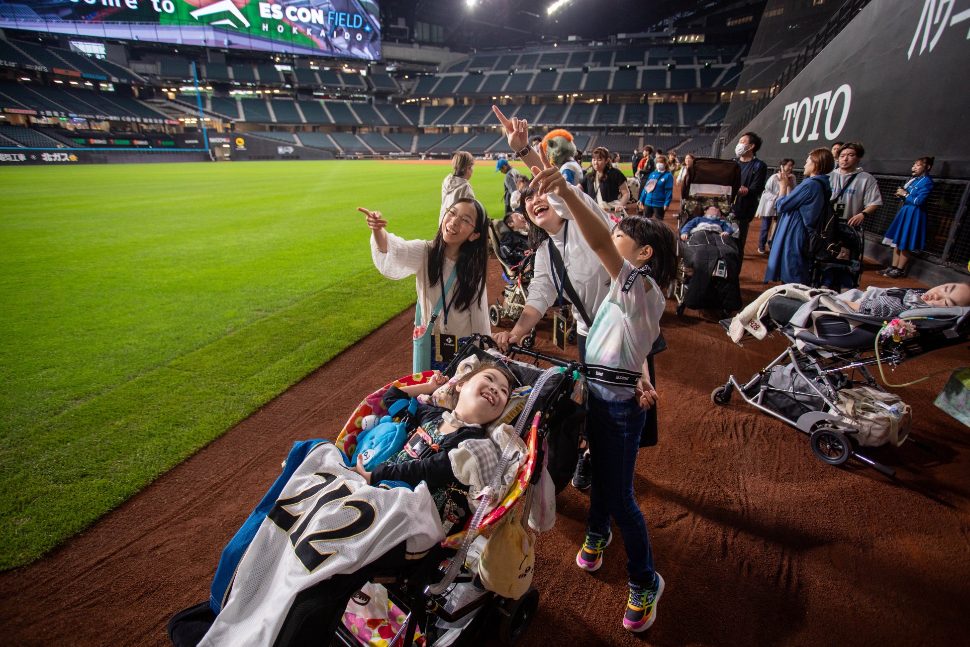エスコンフィールドのバリアフリー状況。医療的ケア児のバギーでのスタジアムツアー参加