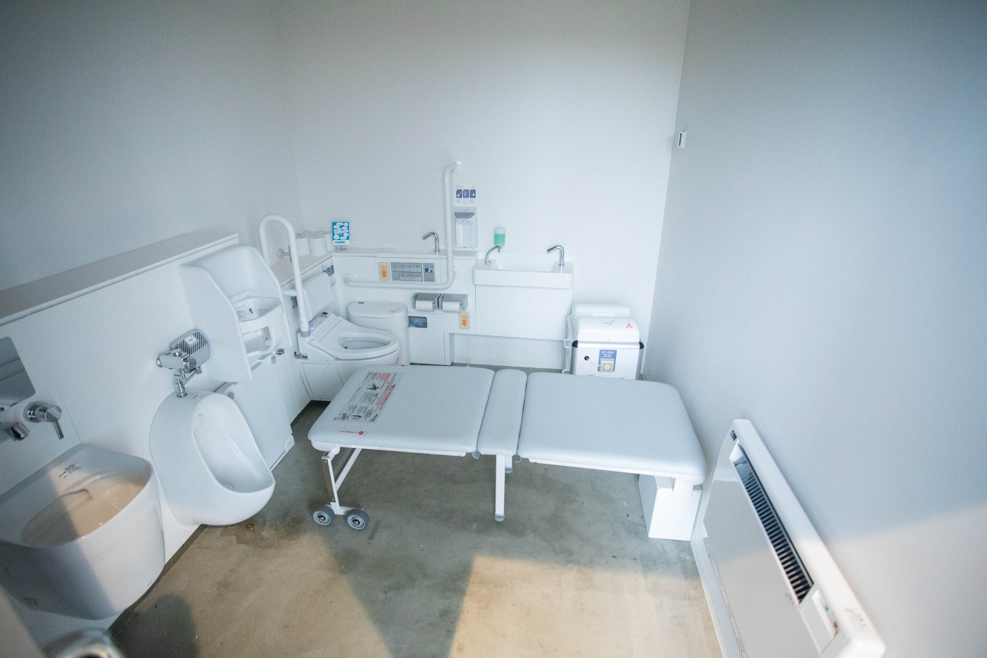 キャスターが付いて折りたたむタイプのユニバーサルシートが設置されているトイレもありました。