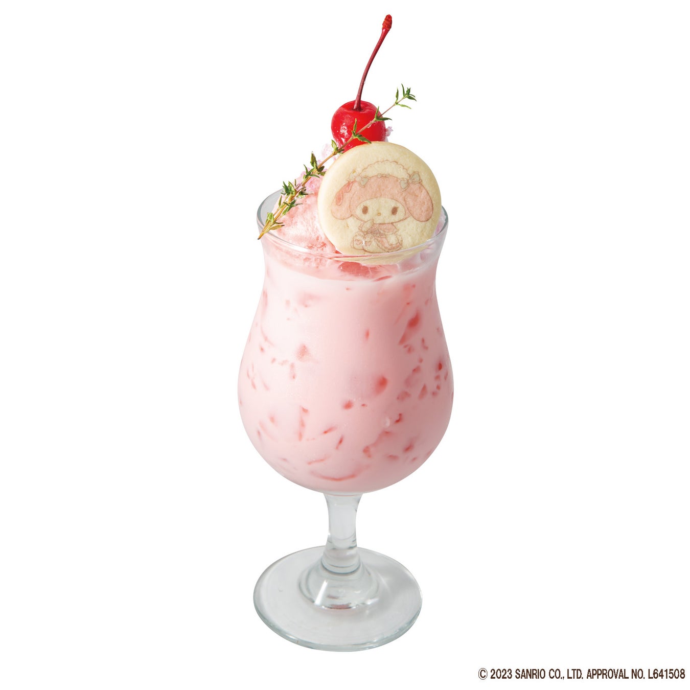 ピンクが可愛いいちごみるくフロート。クッキーの絵柄は全4種★どんなマイメロディが来るかお楽しみに♪