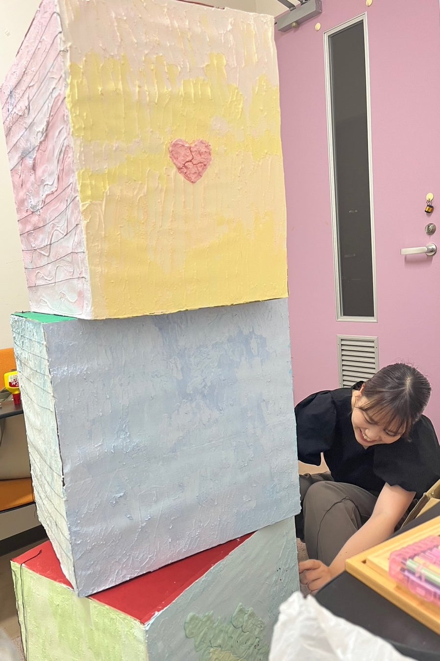 予想を上回る多くの方に参加していただき、昨年秋に実施した壁絵制作に比べ、より「京田辺」に関わることができました。年齢や住む場所も異なる多くの方が、音楽を通じて同じ時を過ごし、共に感動し、笑顔で溢れる一日となり、とても嬉しく思います。「ミュージックタワー」と題したメッセージボードでは、重曹を使用し立体感のある表面に、糸で五線譜を表現し、ご来場の方にはその上に付箋を音符と見立てて貼っていただくなど、来ていただいた方にわくわくした気持ちや一体感をお届けできるよう工夫しました。今回は準備の時間が限られており、同年代の演者さんの出演依頼等に苦労しました。学生の町ともいえる京田辺において、今後はより多くの学生の方に参加していただき、京田辺の魅力を共有すると共に、町の活性化に繋げられたらと思います。