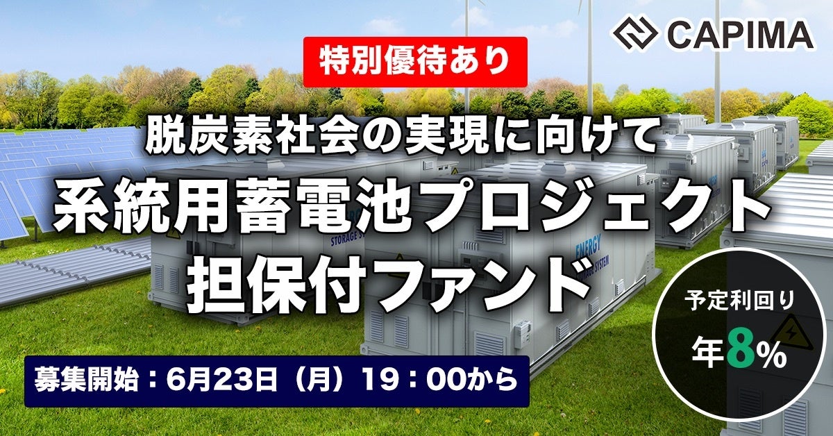 CAPIMA「系統用蓄電池プロジェクト 担保付ローンファンド#1」募集開始