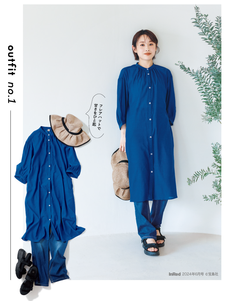 コットンレーヨンの柔らかなテクスチャーが気持ちいいシャツワンピを主役に。