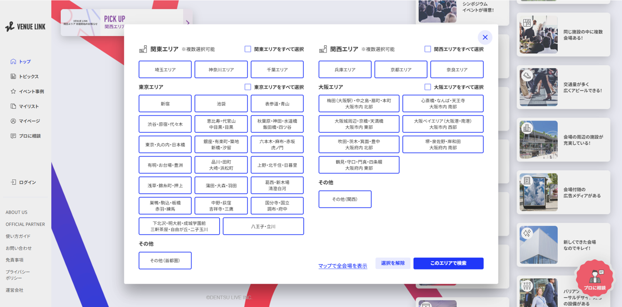 イベント会場検索サイト「VENUE LINK」対象エリアを関西4府県に拡大