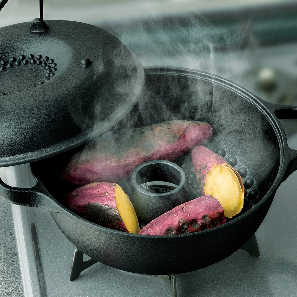 ほくほくの焼き芋が簡単に作れる焼芋鍋。ふかし芋よりも甘さと旨味が凝縮した焼き芋が出来上がります。