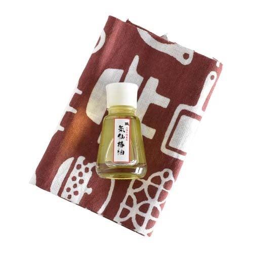 鉄瓶の表面のお手入れにおすすめの手ぬぐい(約35cm×25cm)と椿油(9g)のセットです。