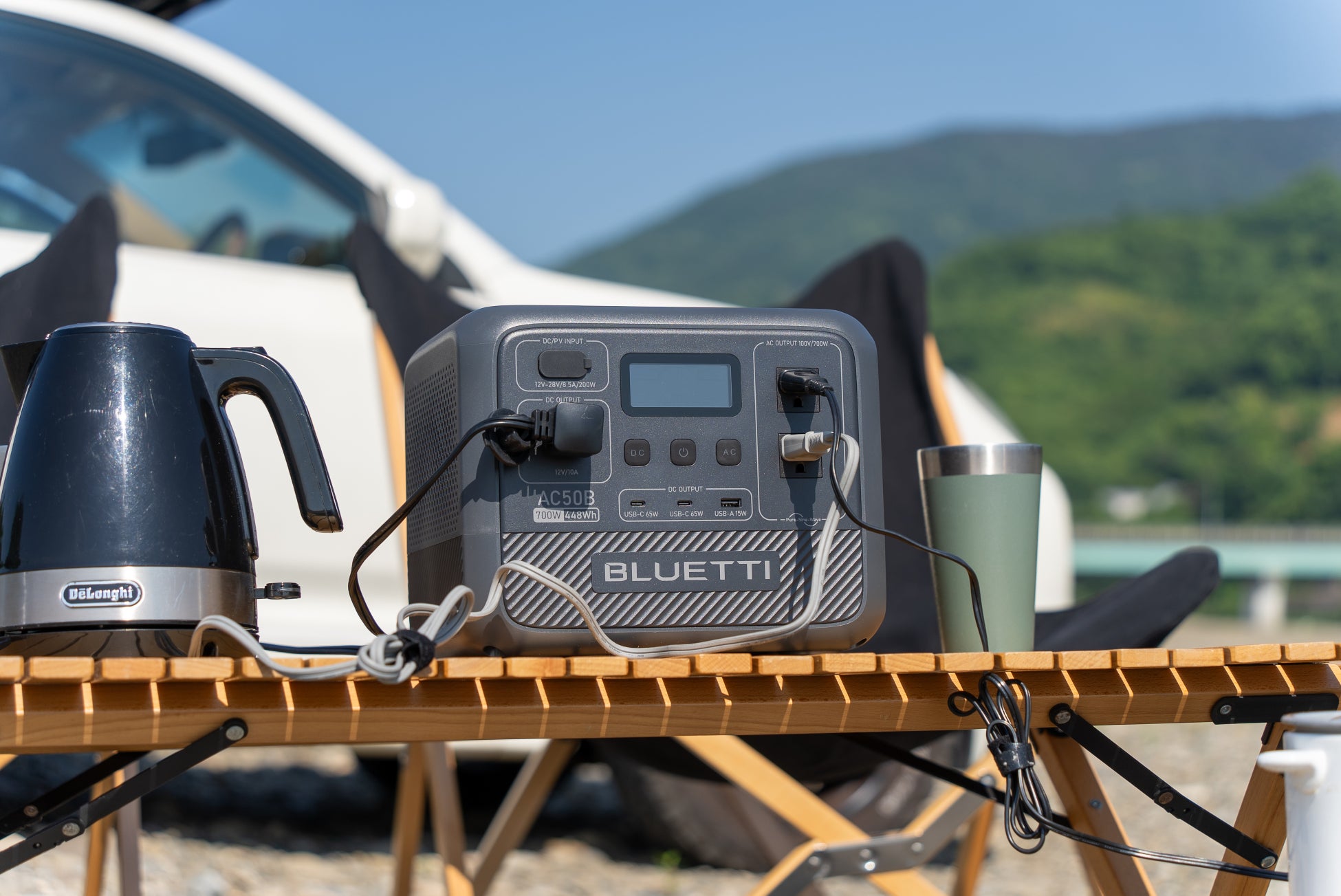 BLUETTI AC50Bはわずか6.7kgの軽量&コンパクトで使い勝手の良いポータブル電源です。出力700W、電力リフトモードにより1000Wまで対応。電気ケトルや電気毛布など電熱線などの家電への給電も可能で、アウトドアや防災にも役立ちます。