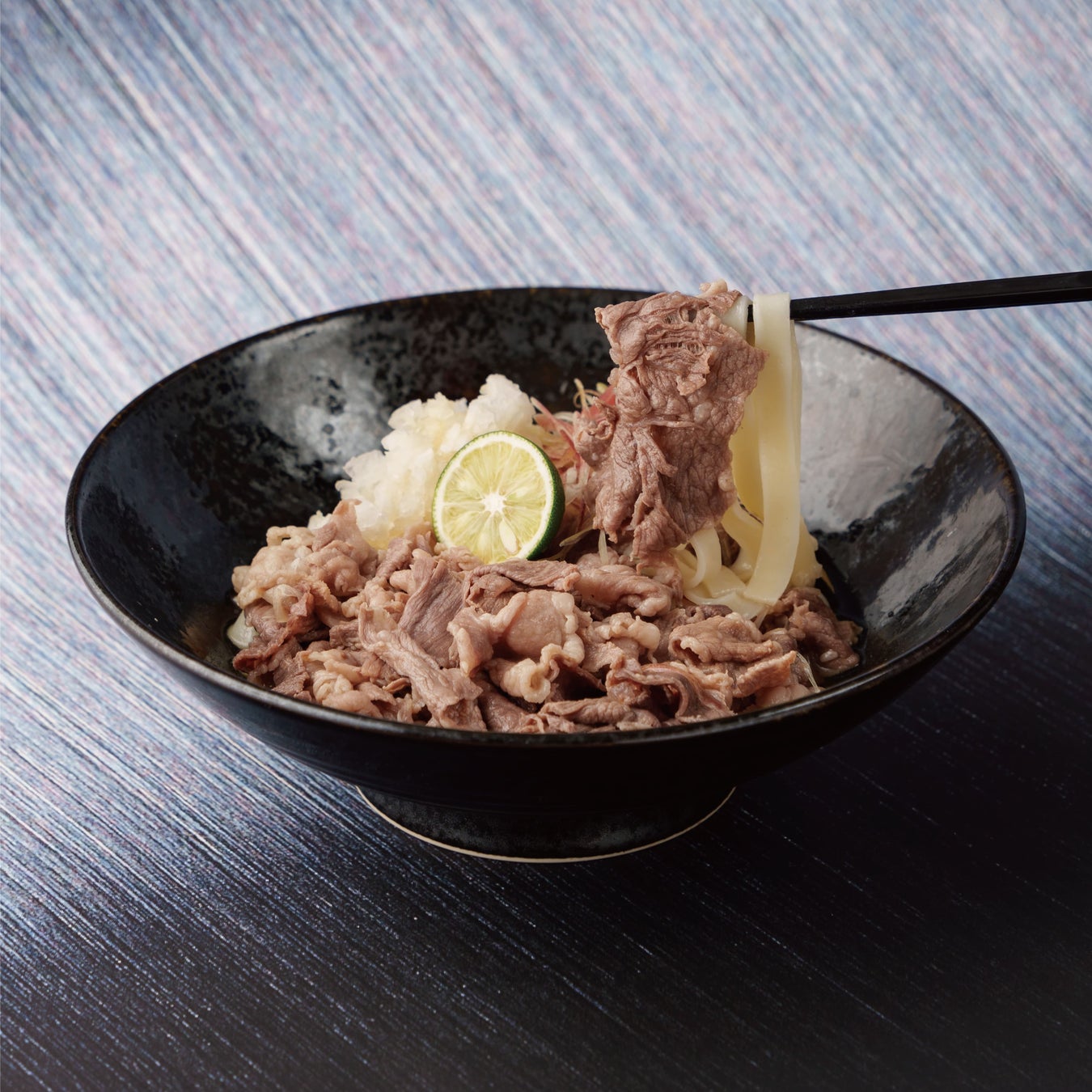 飛騨牛の良質な脂とコク深い味わいが特徴の肉きしめん。白出汁ベースの繊細なつゆが飛騨牛の豊かな風味を一層引き立てます。一口ごとに広がる贅沢な旨みをお楽しみください。
