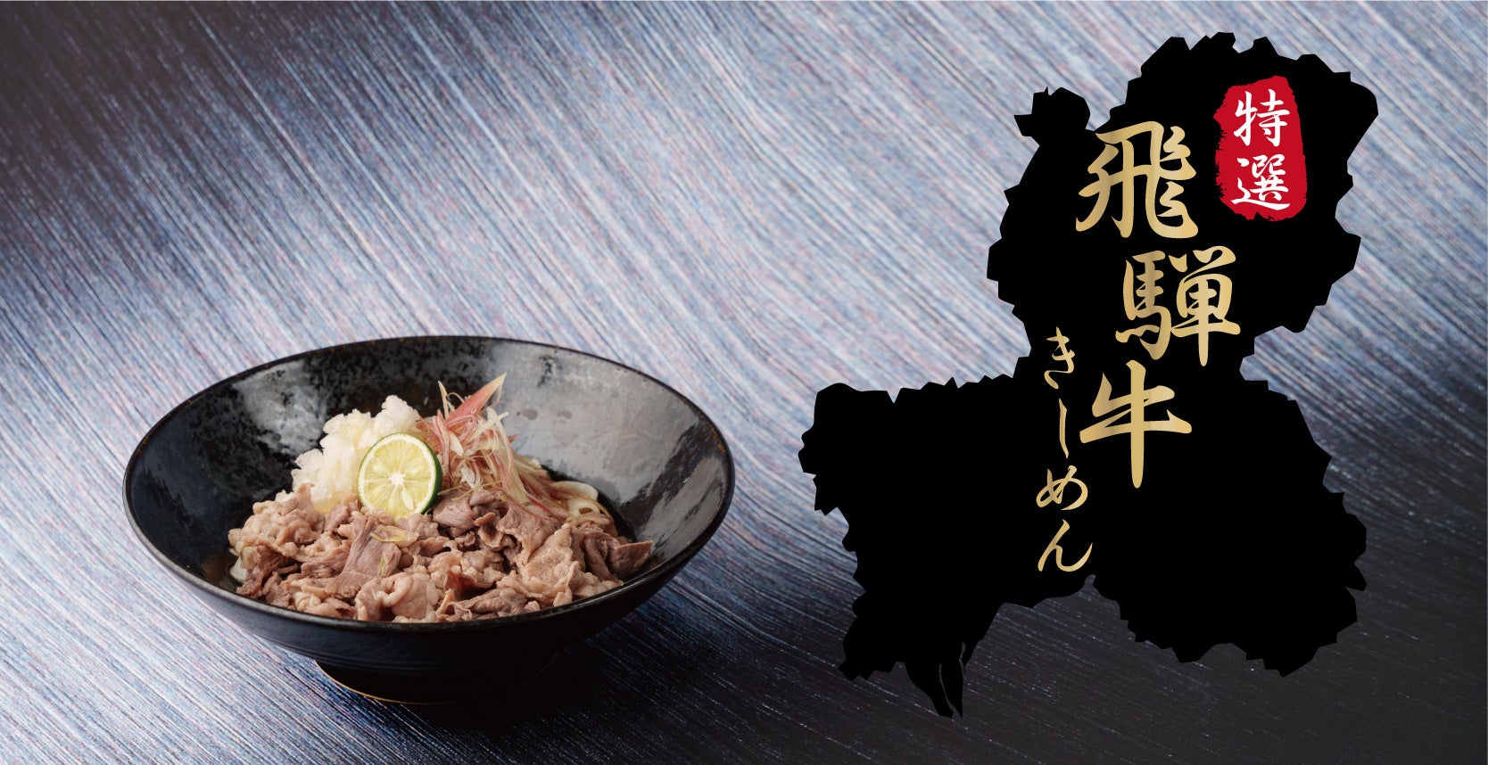 飛騨牛のとろけるような味わいが口の中に広がります。芳醇な香りとコク深い味わい。飛騨牛の良質な脂が引き立つ飛騨牛の肉きしめんをご堪能下さい。