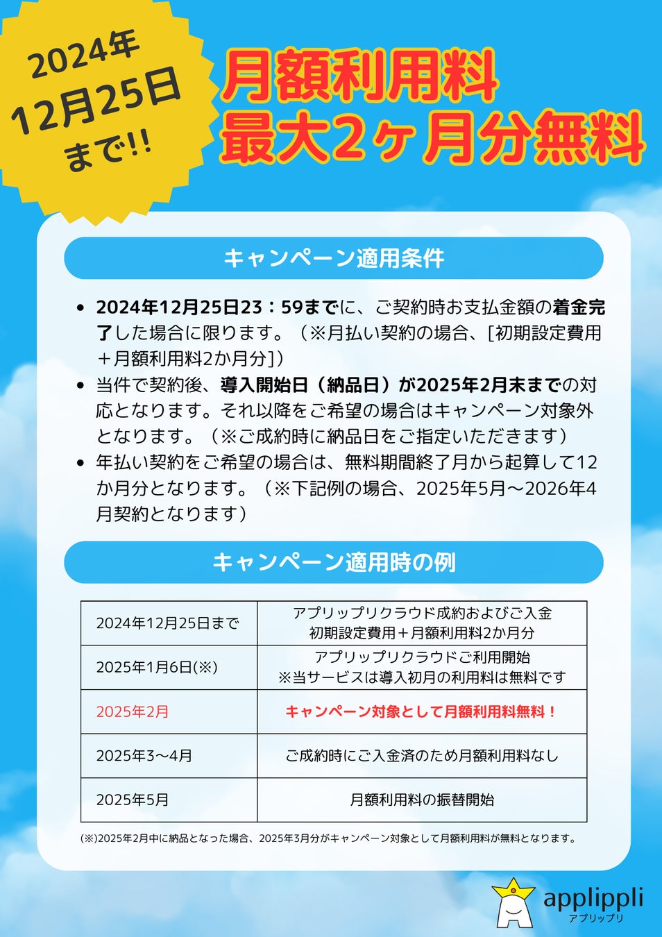 【アプリップリクラウド・アプリップリクラウドスモール・applippli DX Pro】 2024年11月25日(月)~2024年12月25日(水)23:59まで!