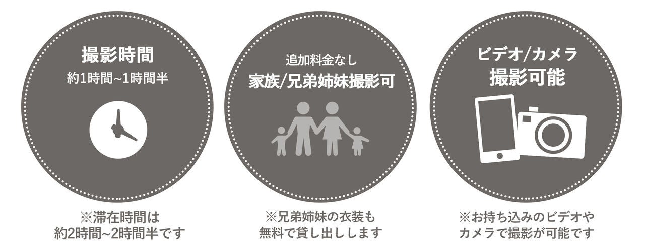 ※七五三やハーフ成人式での着物や袴を着ての撮影の場合はお支度代が別途かかります。