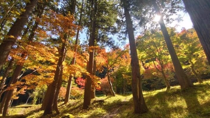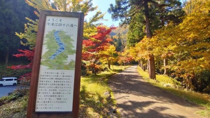 岐阜県高山市国府地域にある岐阜県立自然公園「宇津江四十八滝(うつえしじゅうはちたき)公園」では、紅葉が見頃を迎えています。毎年、11月3日には「秋の感謝祭」を開催しており、今年も、名物「よそ八汁」のほか、地元で採れた野菜や木工製の販売もあります。美しい紅葉と滝の共演をお楽しみください。
