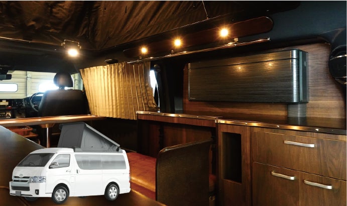 さらに、DAIKINの家庭用エアコン「リソラ」をエクステンションBOXと共に搭載することで、車内空間を圧迫せず、効率的な温度管理が可能です。特に夏場の車中泊でも快適に過ごせるため、より快適に楽しんでいただけます。