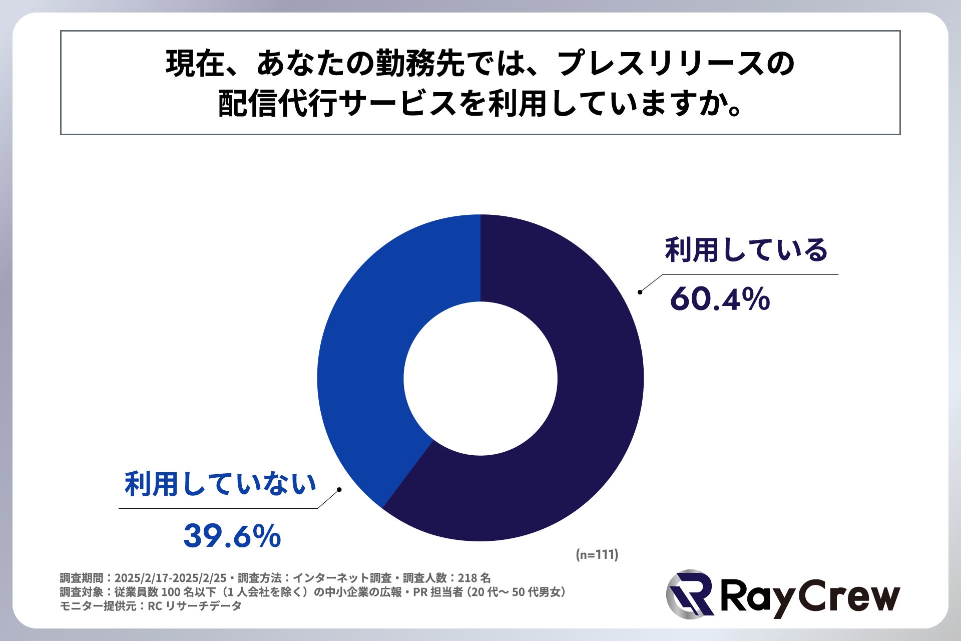 現在プレスリリースを配信している中小企業の6割以上が、プレスリリースの配信代行サービスを利用している