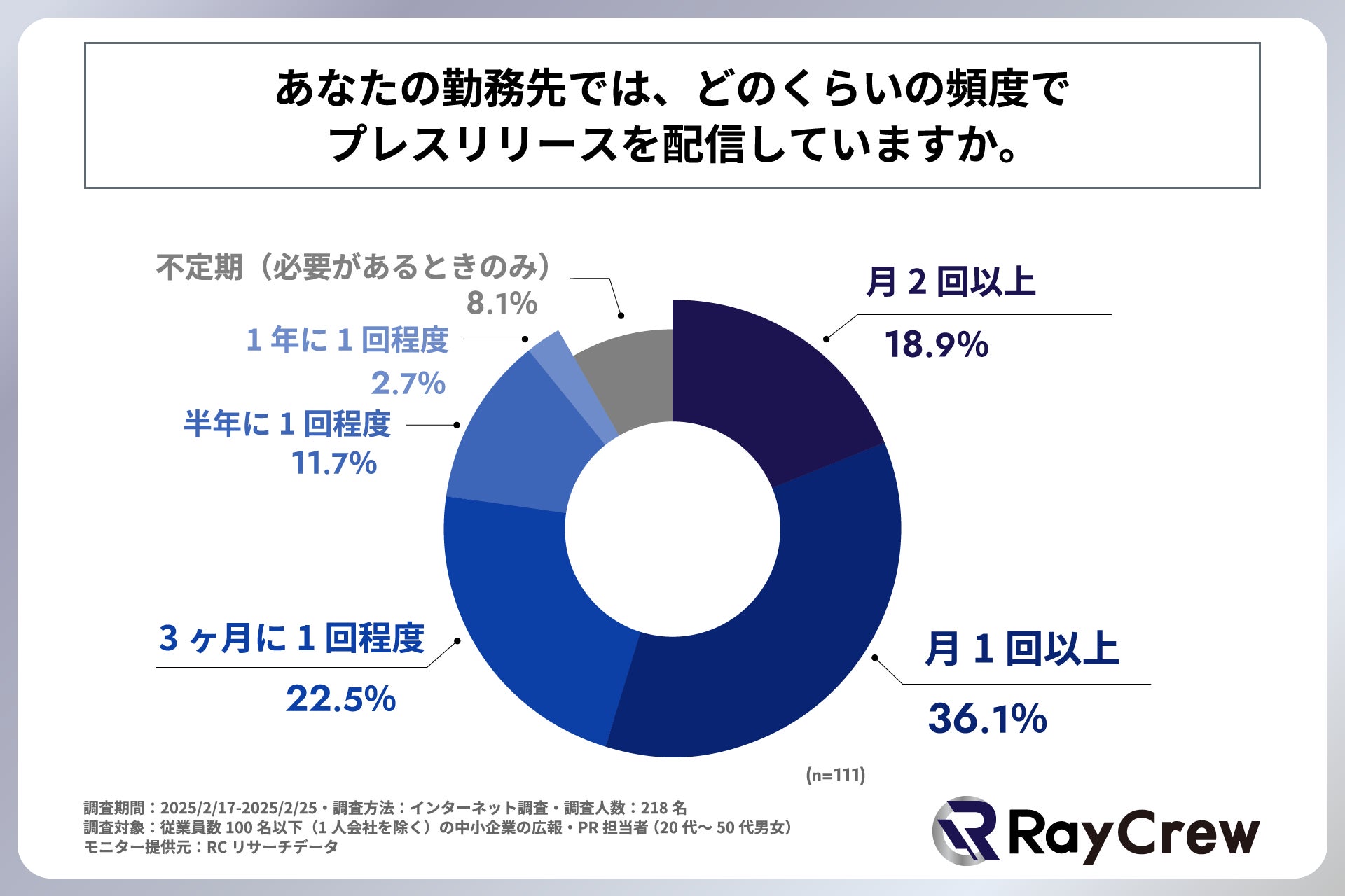 ・現在プレスリリースを配信している中小企業の55%は、少なくとも月1回以上プレスリリースを配信している