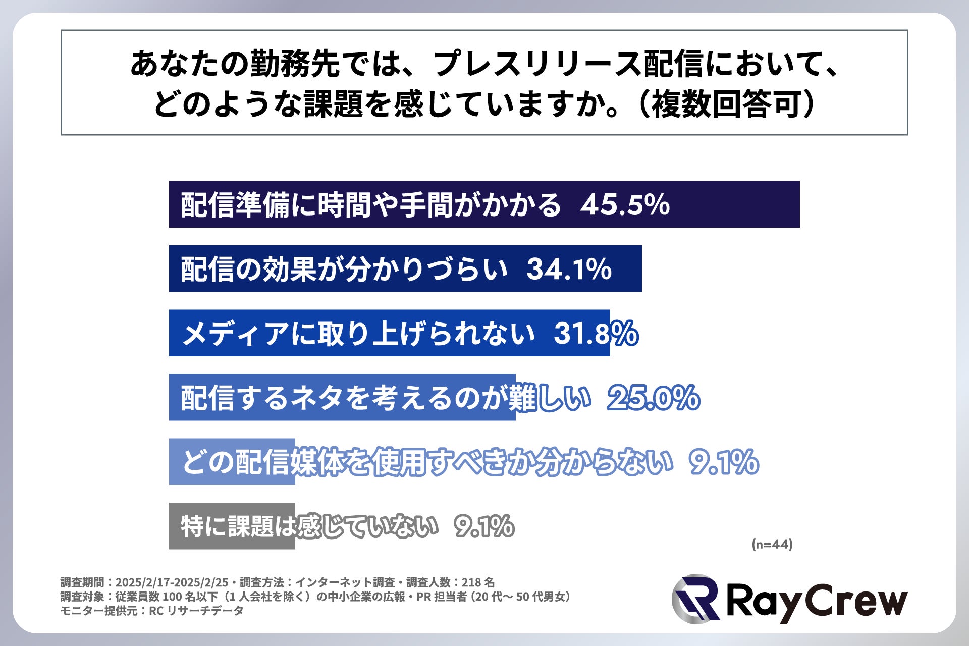 ・プレスリリース配信において最も負担に感じるのは「配信準備に時間や手間がかかること」