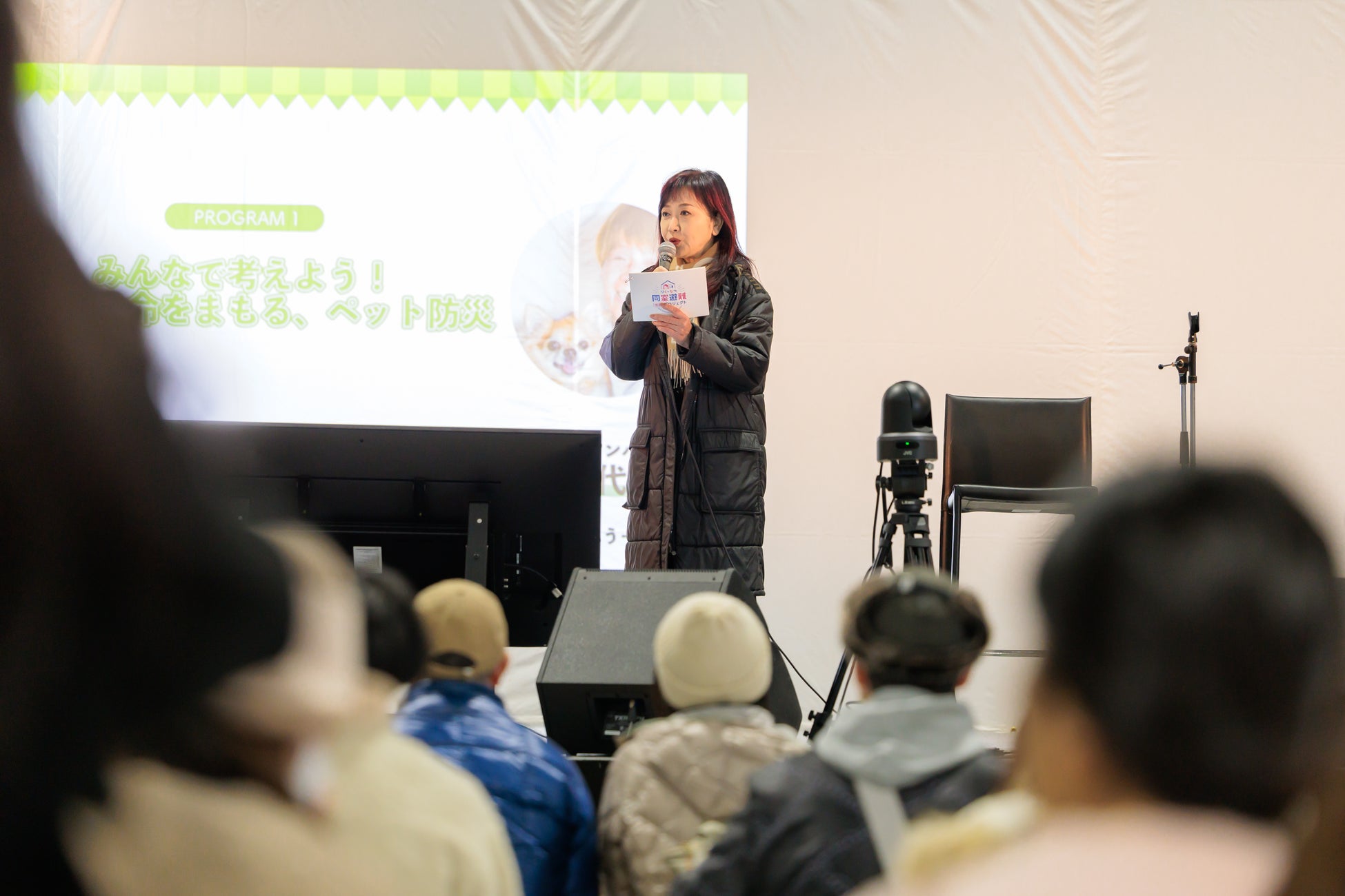 最後に会場にいる方々へ伝えたい事を聞かれ「ペットを飼っている人からしたら、“ペット”ではなく“家族”です。被災者を見ていると、家も仕事も何もかもなくなってしまっても頑張っていかなければなりません。そんな状況でなぜ頑張れるかというと、家族が一緒にいるからだと思います。なので、当たり前にペットと一緒に避難できる場所というのが全国に少しでも広がっていく事を願っています。」と思いを述べました。