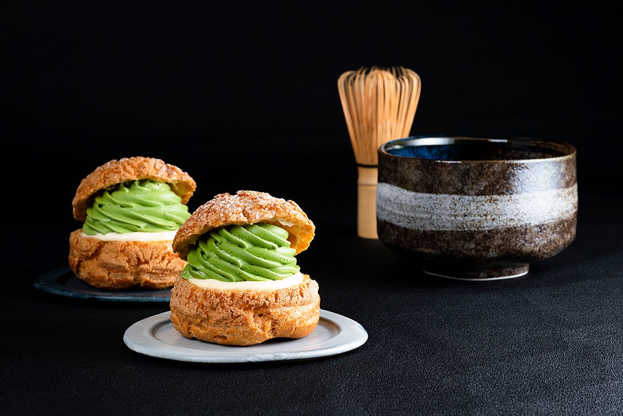 ふくよかな香り、濃厚な旨みと甘みを持ち合わせた八女抹茶を使用した抹茶クリーム、口どけなめらかなカスタード、焼きたてのサクサクのシュー生地、これらの絶妙なバランスをどうぞお楽しみください。