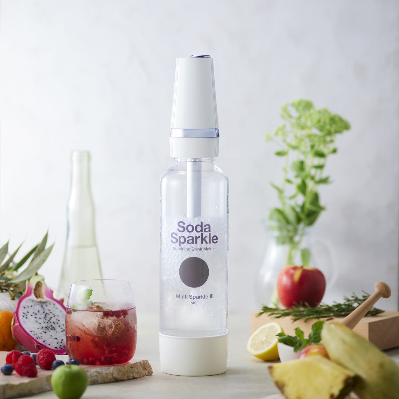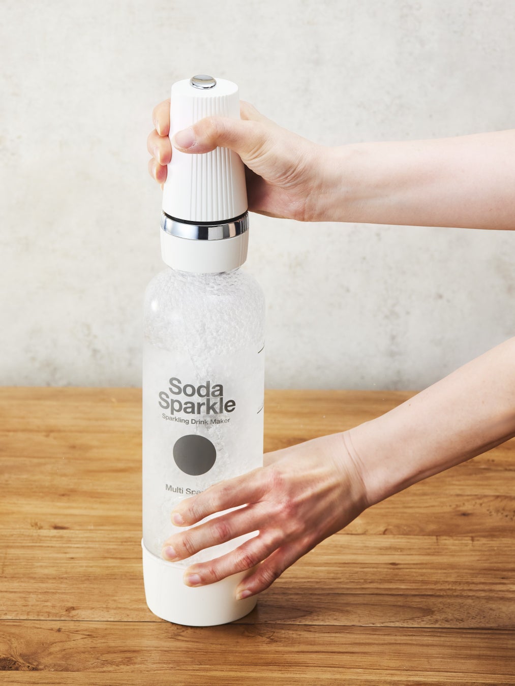 電力を使わず約35秒で炭酸水を作れるSodaSparkleは、水はもちろん、お好みのジュースやドリンクを手軽に炭酸化できる便利な炭酸水メーカー。