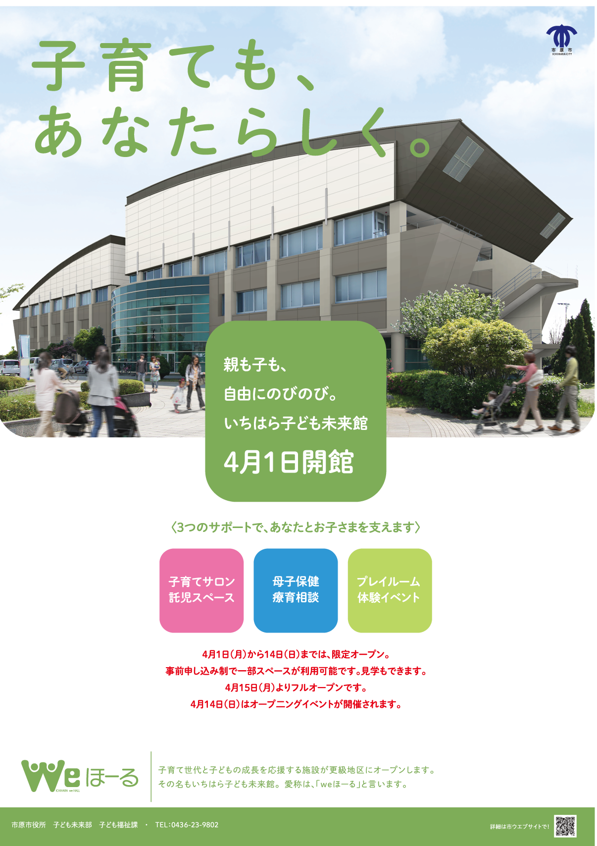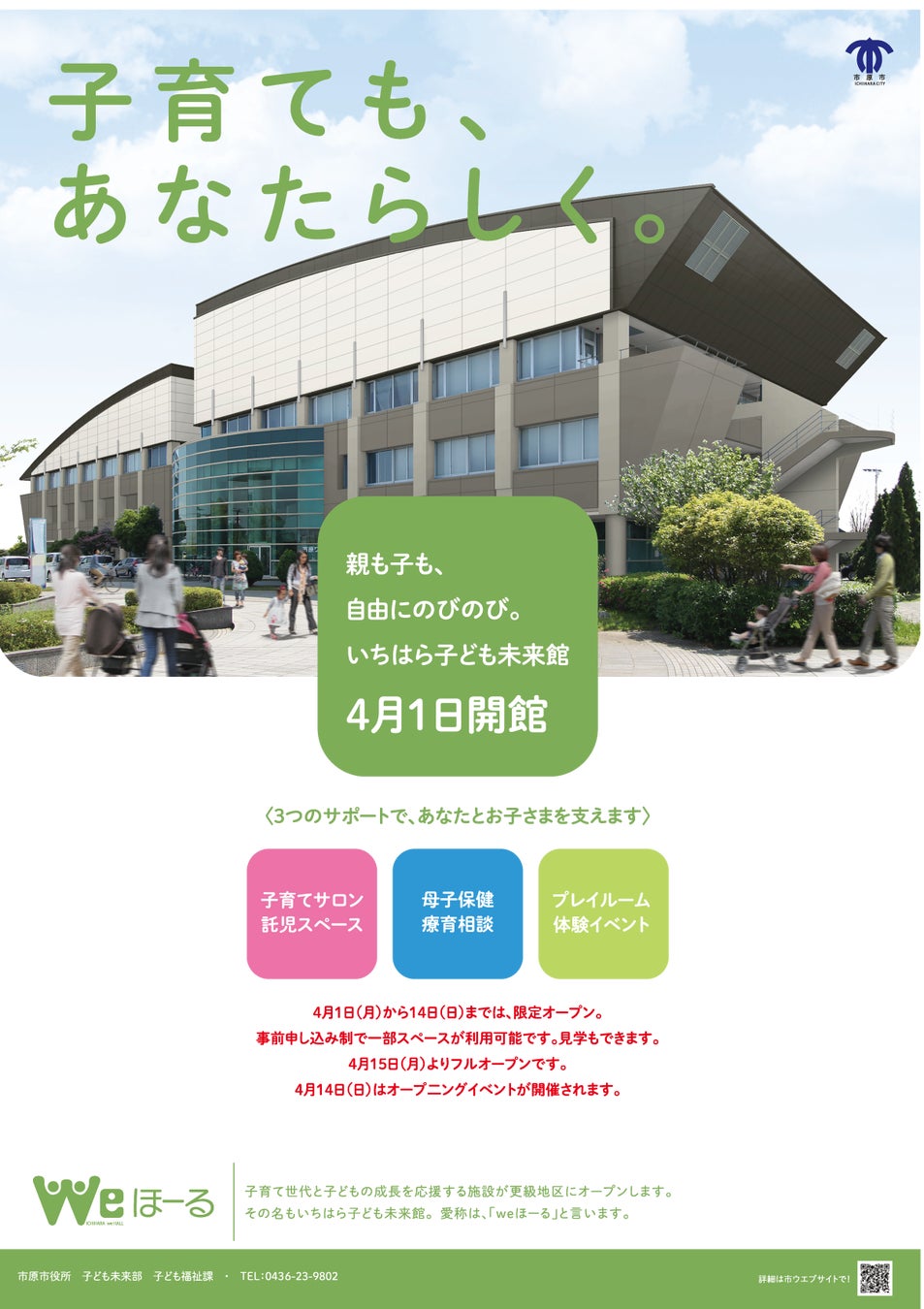 子ども・子育て支援の総合的な拠点施設、「いちはら子ども未来館(愛称:weほーる)」が4月1日にオープンします。
