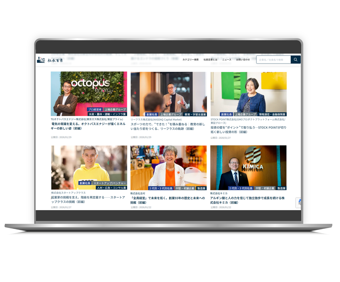 「社長百景」は、経営者へのインタビューを通じて、経営者の哲学や事業への想いを言語化し、物語として発信する経営者インタビューメディアです。