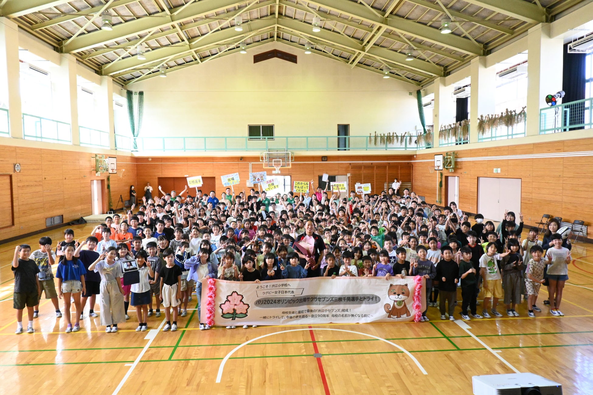 葛飾区渋江小学校は、今年創立90周年を迎えるメモリアルイヤーです。9月26日(木)同校体育館にて、パリ2024オリンピック女子セブンズ日本代表(過去最高9位を記録)で、同校を卒業された三枝千晃選手をお招きして、児童からの質問に答えたり、一緒にトライをするなど交流イベントを実施。