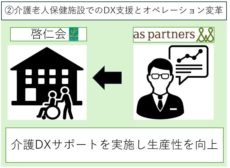 アズパートナーズは、令和6年度より全国で介護DXサポート事業を実施しています。啓仁会が運営する介護老人保健施設「いとうの杜」では、すでにアズパートナーズの介護DXサポート事業を導入し、理事長からも「夜間業務を約70%削減。職員の安心につながる取り組み」と評価いただき、今後は啓仁会内の他施設への導入を進めていく予定です。