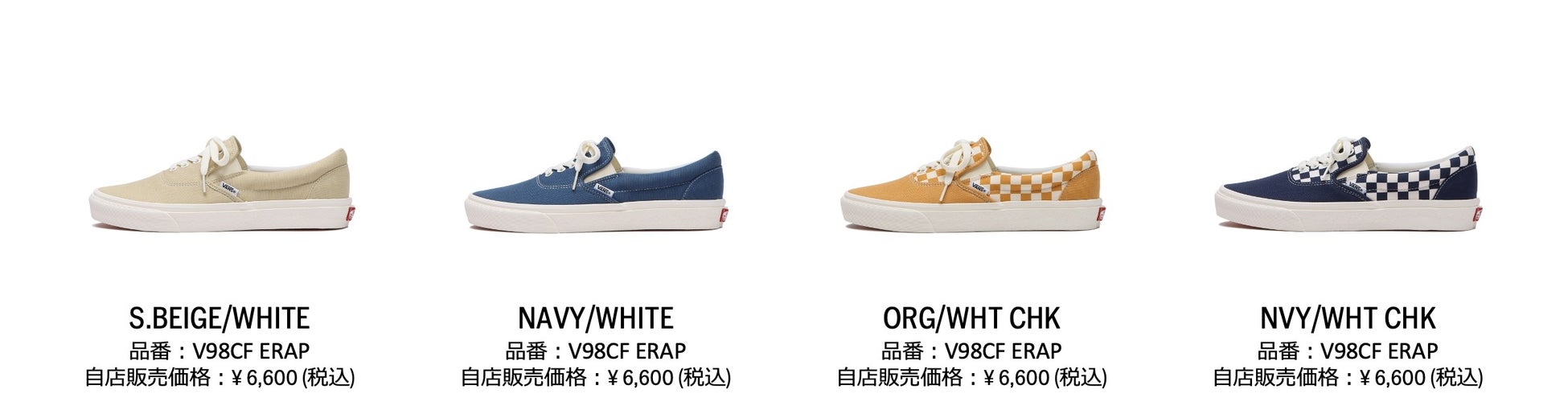 VANS SLIP-ON ERAP (スリッポン エラップ) VANSのアイコンモデルを大胆に融合SLIP-ONとERAを掛け合わせたアレンジモデルに、春らしいシーズナルカラーが登場