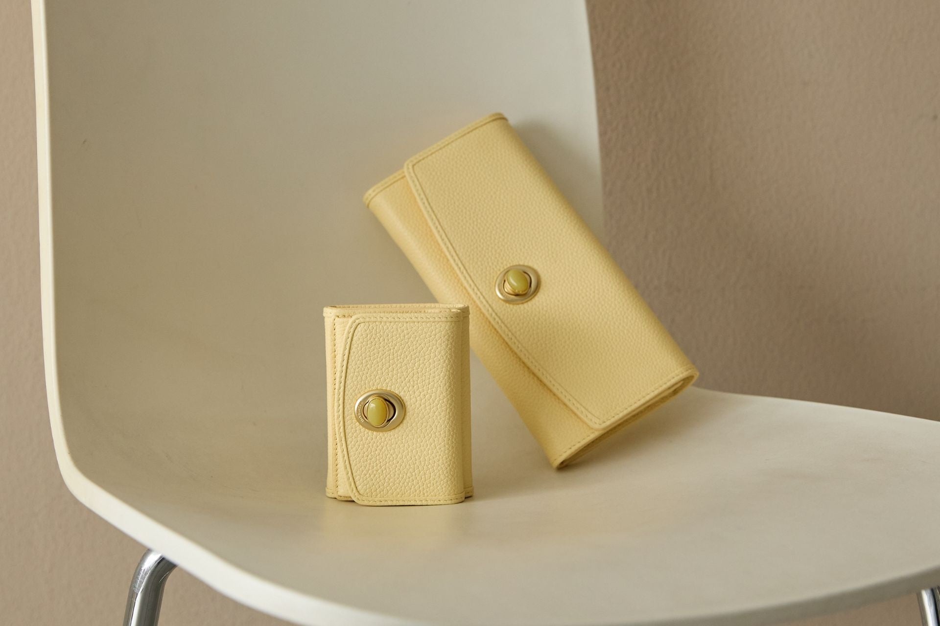 ミニマル派に人気を集めるハーフ財布から、柔らかく上品な新色が追加。