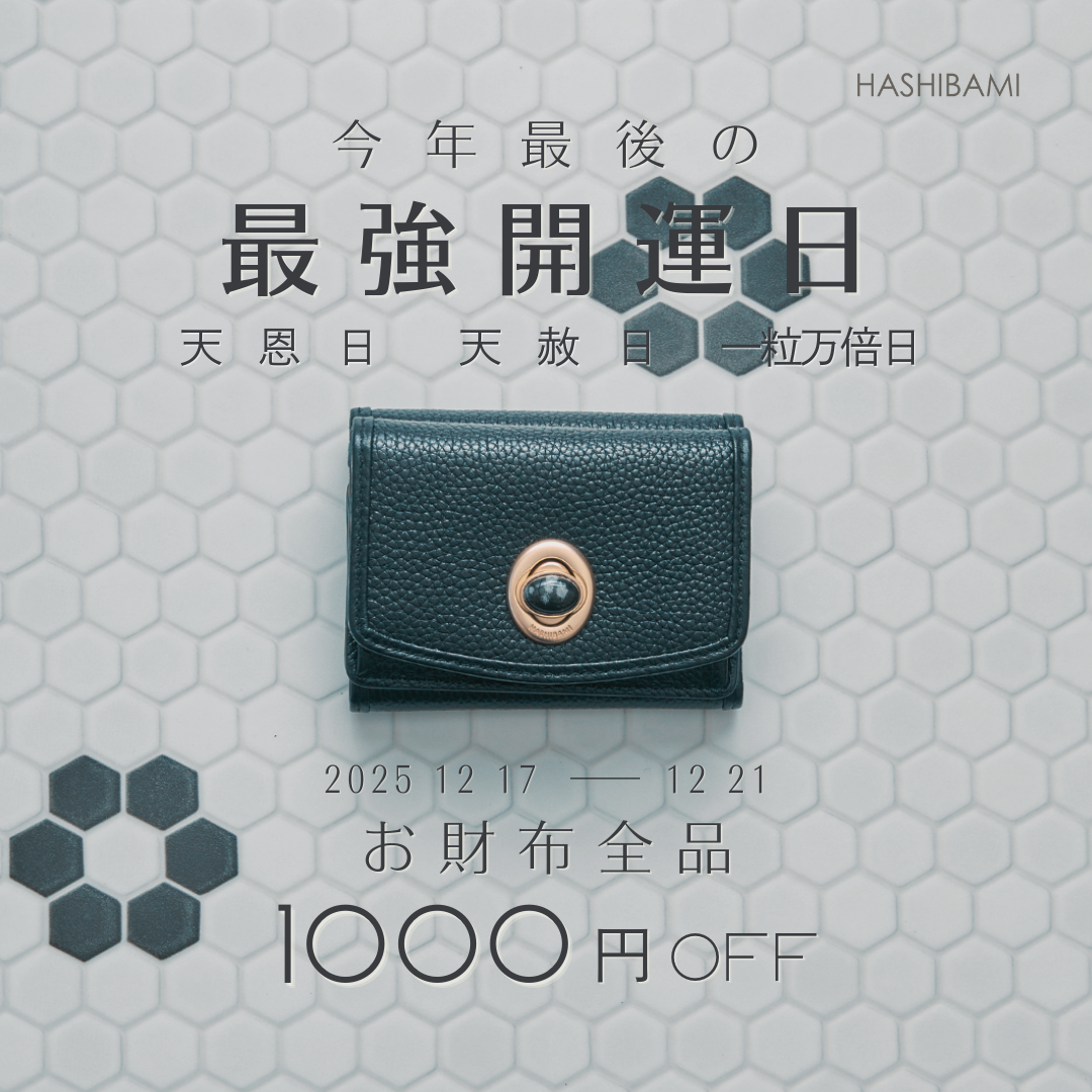 さらにHASHIBAMIでは、最強開運日を前にした2025年12月17日(水)〜21日(日)の5日間限定で、公式オンラインストアにて“お財布全品1,000円OFF”となるスペシャル企画を開催。