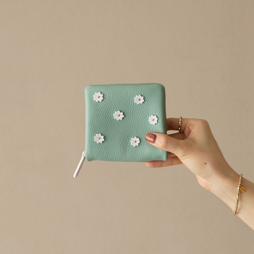 “淡さ”と“控えめな甘さ”を象徴する、可憐なフラワーモチーフを小ぶりなサイズに落とし込んだ新作ミニウォレット。