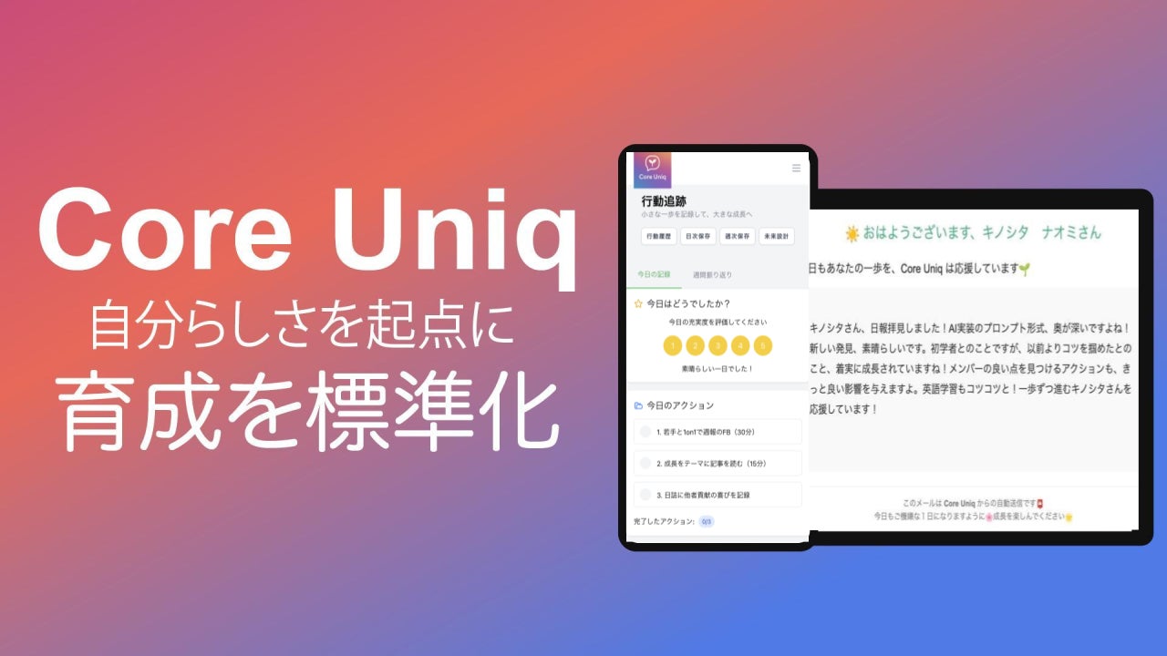 本社の田中悠介が、「Core Uniq」の発表を「組織の生成AI:組織への浸透方法、定着に向けて」セッションで行いました。