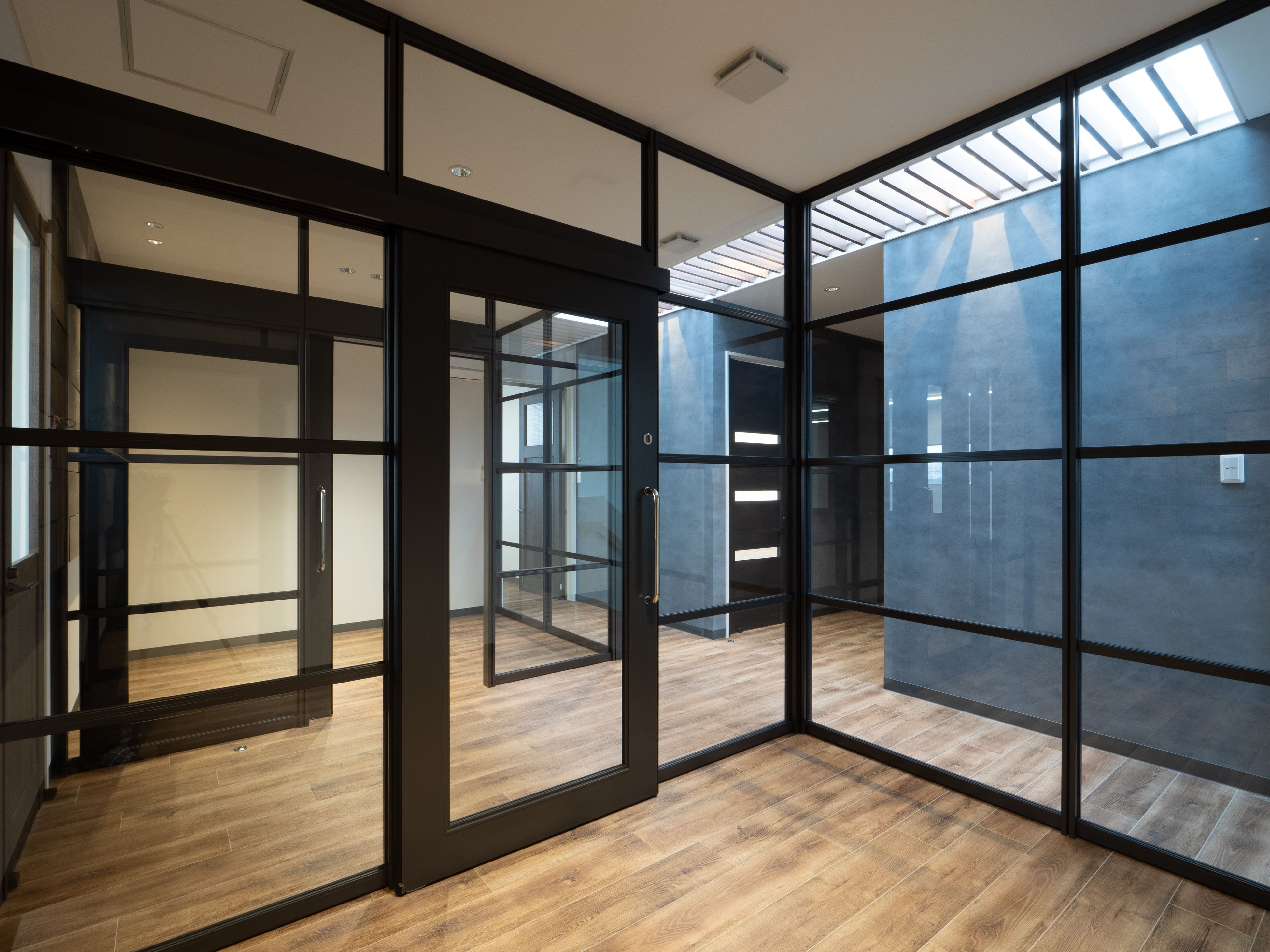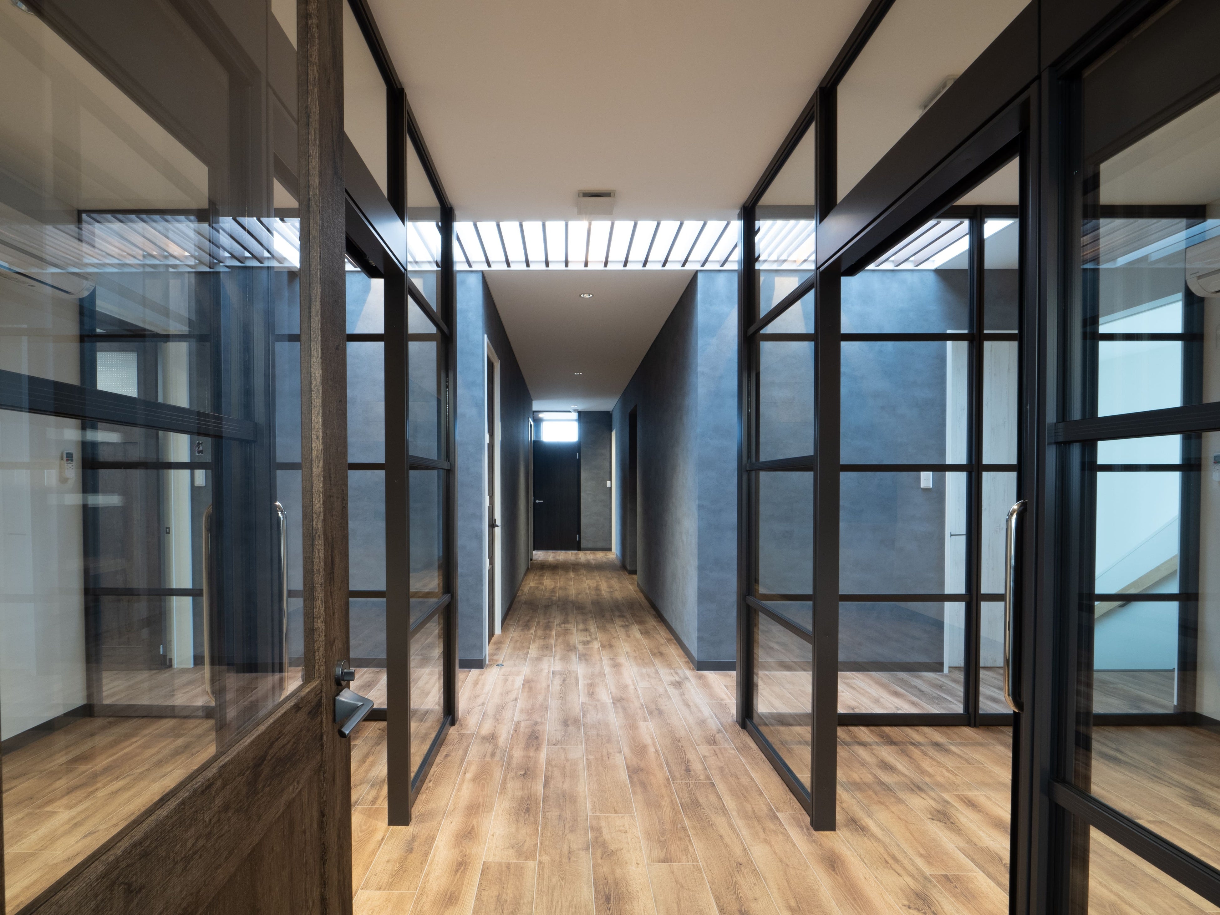 周囲を部屋に囲まれた暗くなりがちな場所へ、柔らかい光を差し込みます。