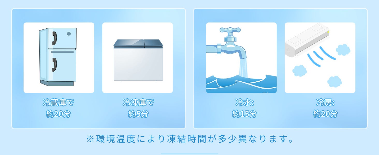 この首ひんやりグッズは、首にかけるだけで使用できます。凍った状態でそのまま使用可能ですが、液体の場合は冷蔵庫や氷水で固める必要があります。凍結時間は環境温度によって異なりますが、ペットの体を長時間涼しく保ち、熱中症を予防する効果があります。