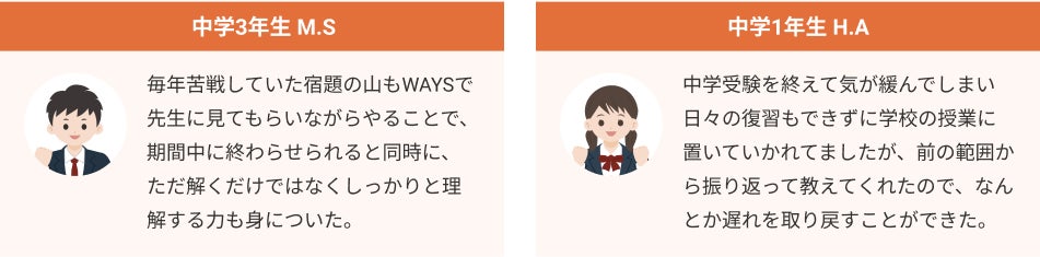 ぜひこの機会に、1学期からの総復習から夏休みの宿題、2学期の休み明けテストに向けた対策など、WAYSの夏期講習をご活用ください!