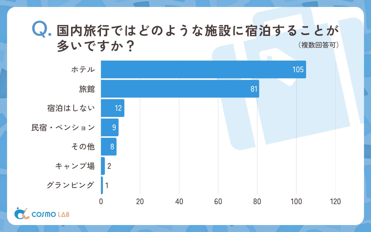4:国内旅行ではどのような施設に宿泊することが多いですか(複数回答可)(有効回答者数:144名)