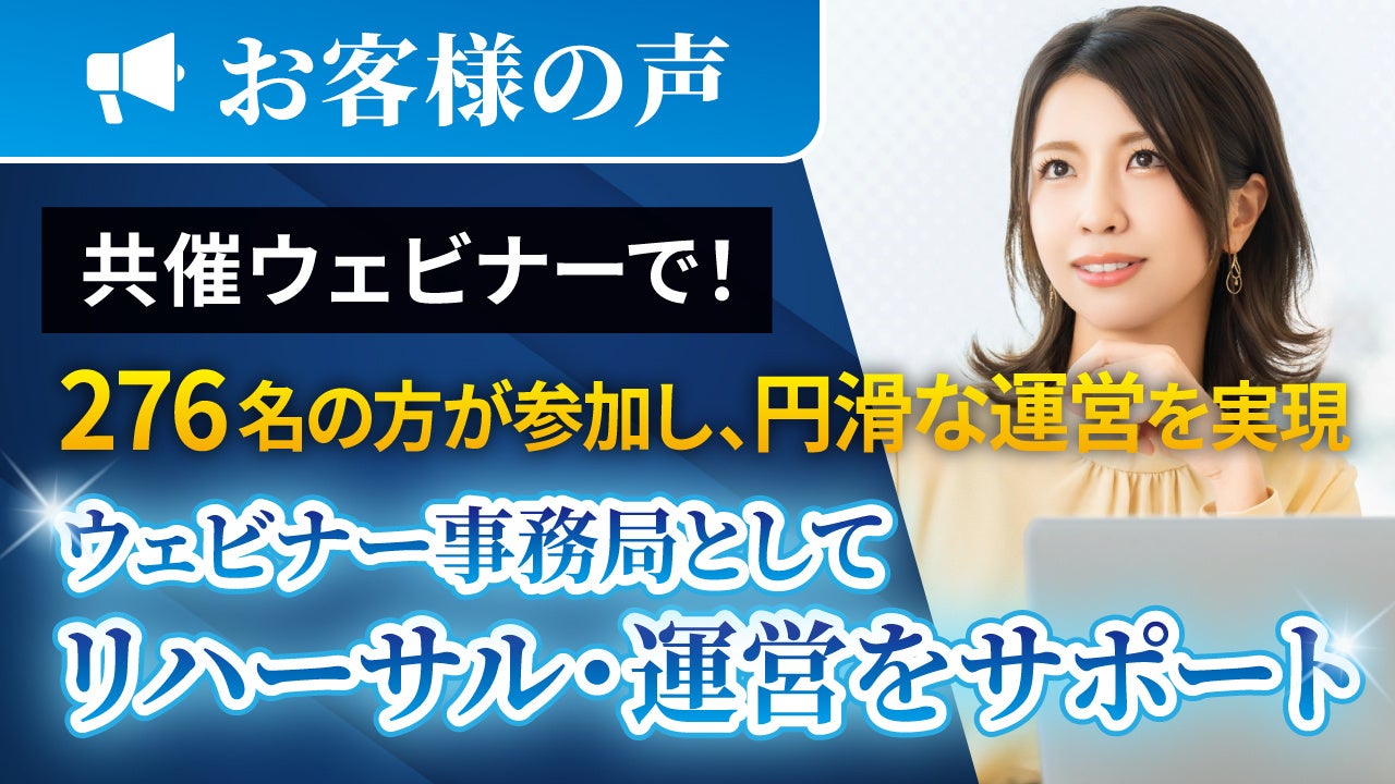 そこで、リハーサルから当日のカメラワーク、裏方対応までをサポートする当社の「まるごとウェビナー サポートプラン」を導入いただき、276名の参加者に対し、安定した運営と高いエンゲージメントを実現されました。