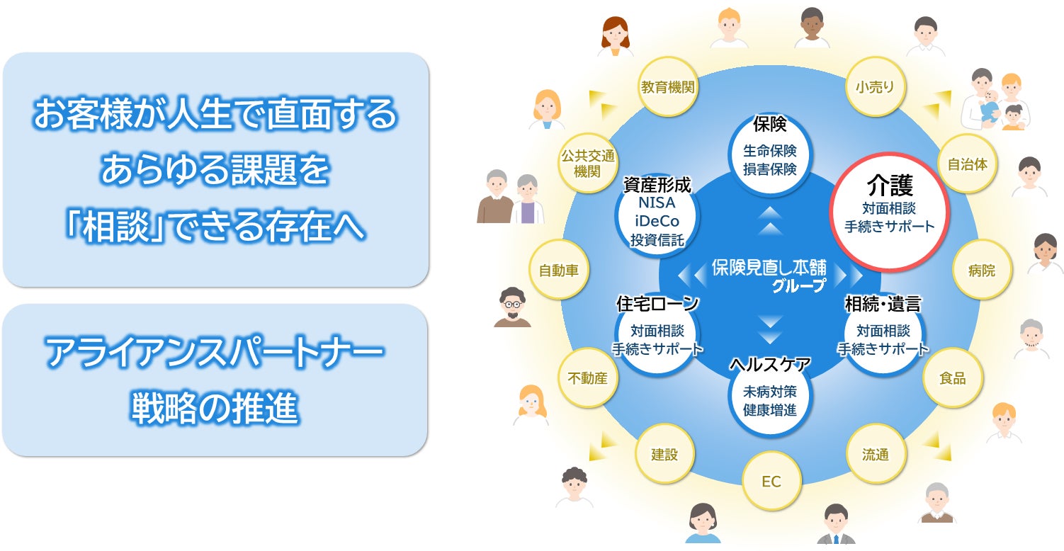 当社は来店型保険ショップ「保険見直し本舗」を全国350店舗以上展開し、年間約10万件以上の対面での保険相談サービスを提供してまいりました。お客様のライフプランに合わせた保険をご提案する中で、自分や家族の老後を見据えたときに直面する介護に関する悩みに接することが増えてまいりました。