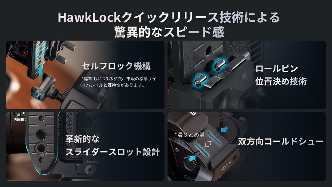 HawkLockクイックリリース技術、三点ロックシステム、豊かな拡張性