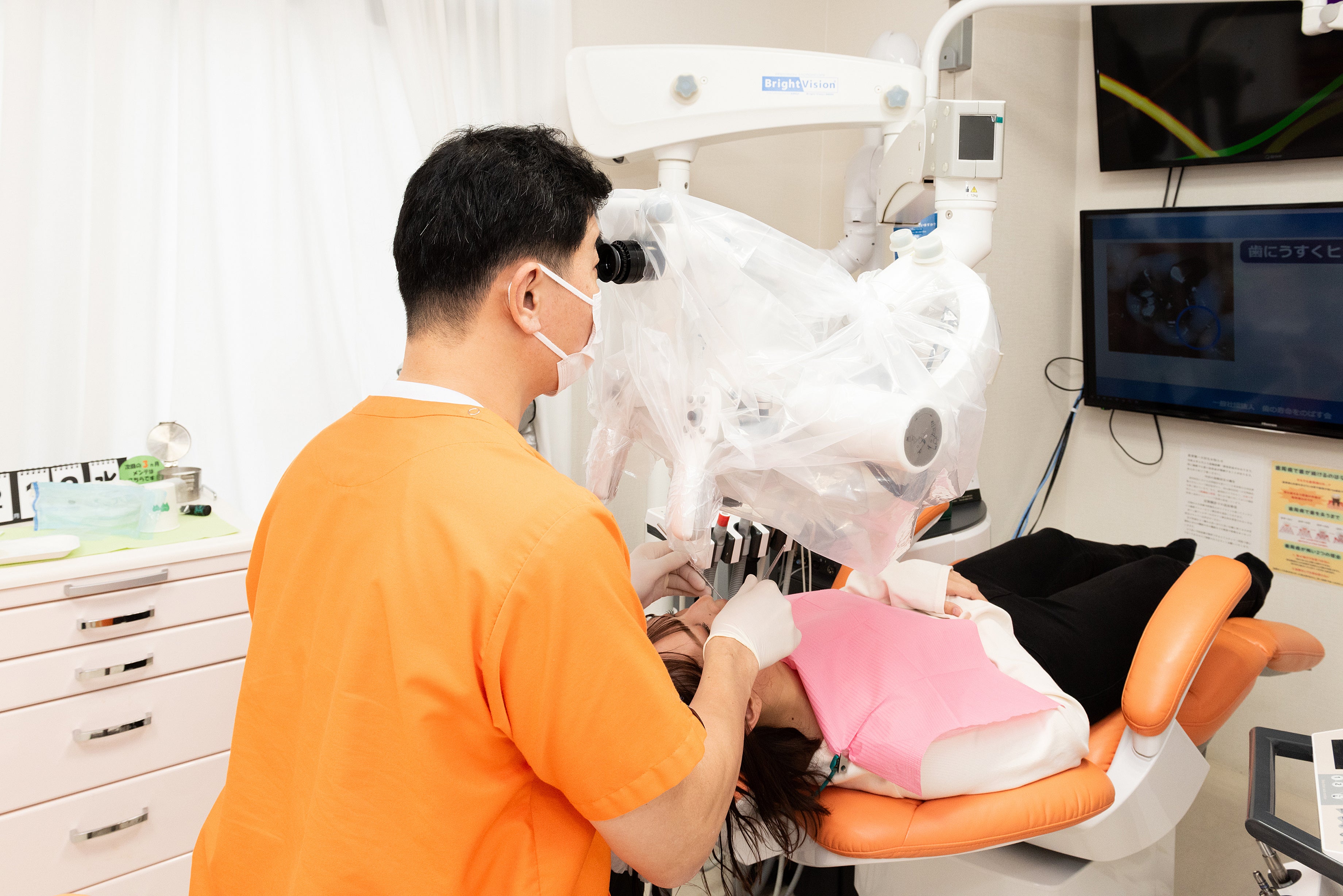 当院では、ペントロン社製 電動フォーカス機能付き高性能マイクロスコープ「ブライトビジョン3200」を導入し、肉眼では確認が難しい歯周組織や歯根周囲の状態まで、拡大視野下で精密に把握した歯周治療を行っています。