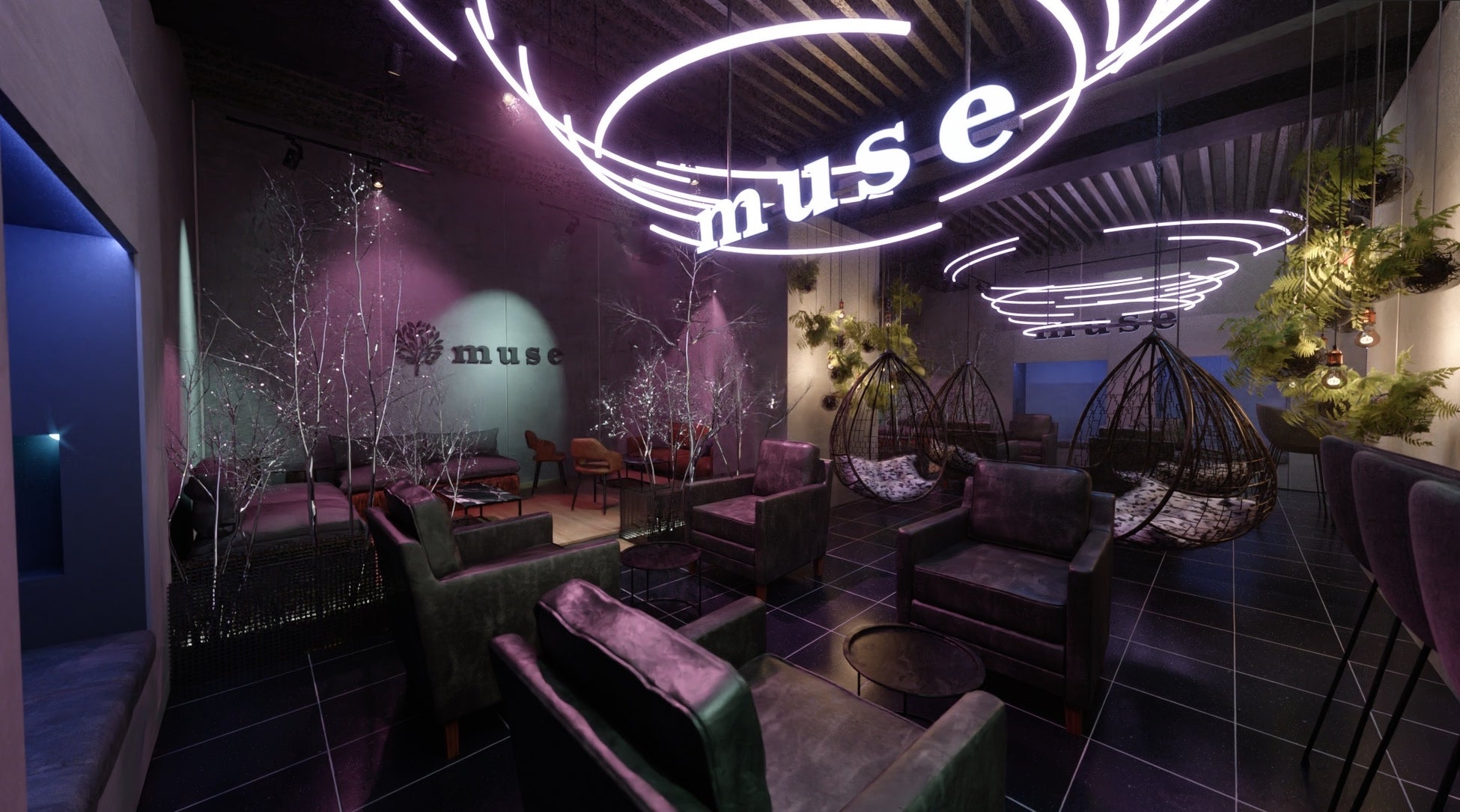 ストリートとコンクリートが調和する木の温かみが感じられる落ち着いた空間が特徴で、muse初となる二段ベッド&ネオン個室がある空間で、”ぎゅっ”と距離が近づく大人な時間を演出します。