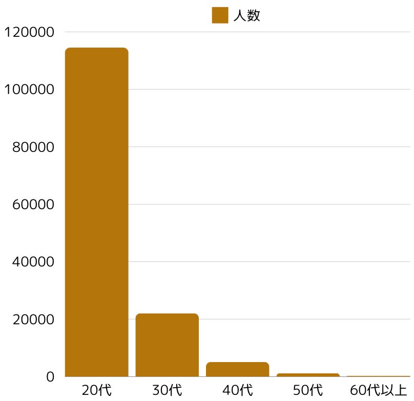 データを見るとわかるように、確かに多くの利用者は20代となっていますが、X/Y世代も28,595人と利用者がいるのがわかります。
