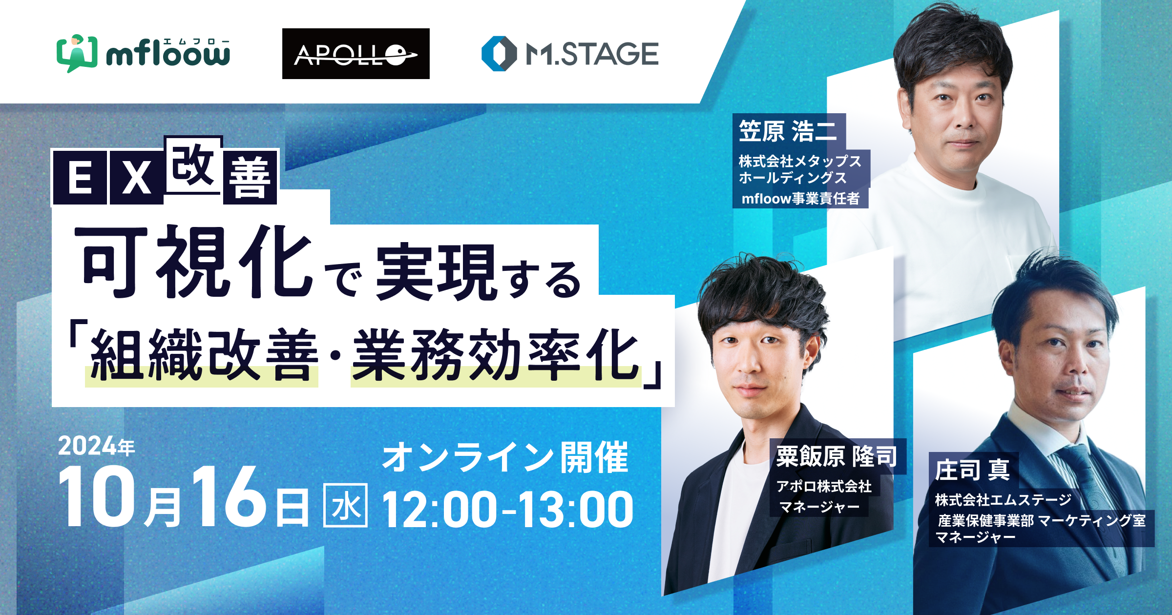 【エムステージ×メタップス×アポロ 3社共催】EX改善!“可視化”で実現する「組織改善・業務効率化」 10/16(水)12時~開催