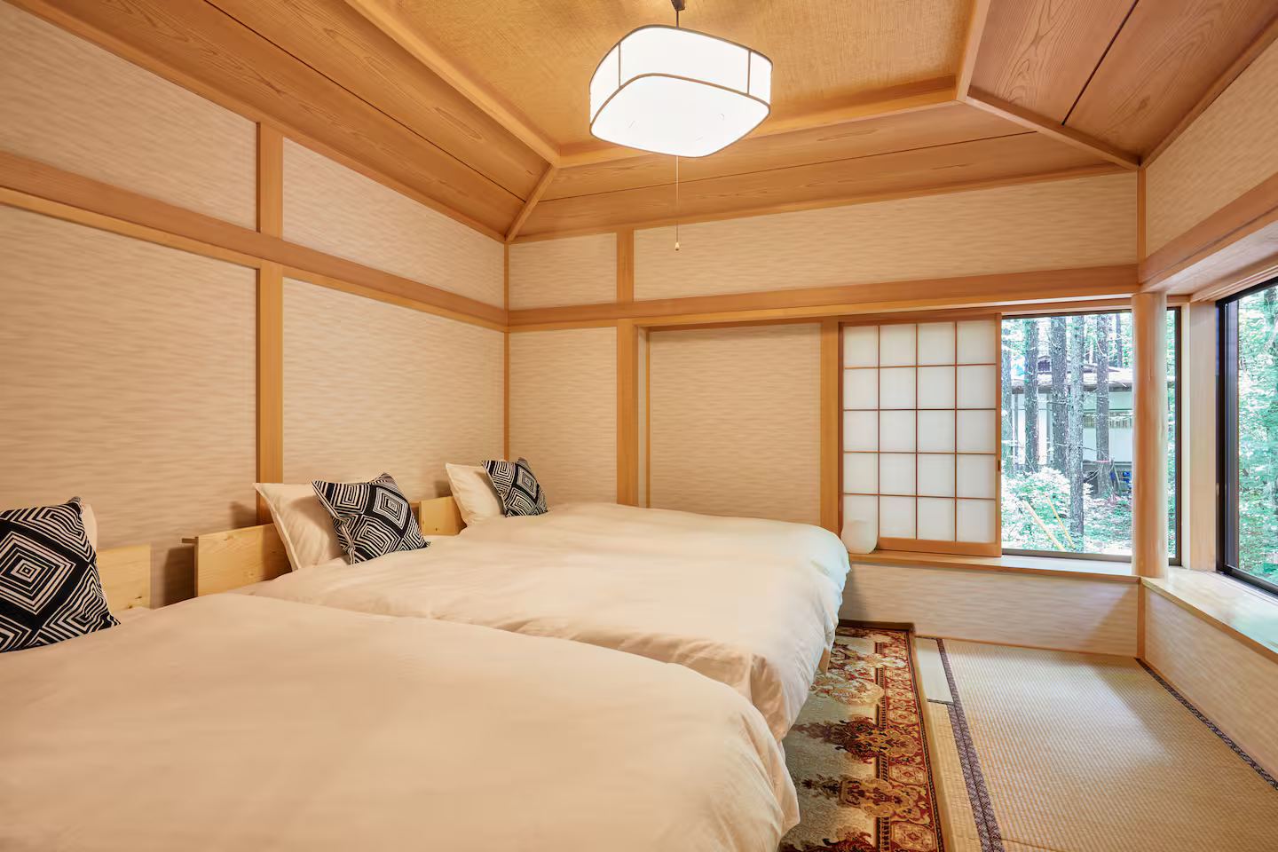 森に囲まれた一棟ヴィラ「HIBIKI北軽井沢」。