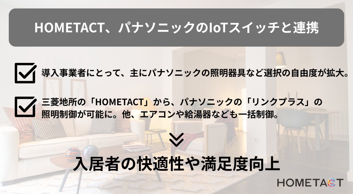 三菱地所の総合スマートホームサービス「HOMETACT」とパナソニックのIoTスイッチ「アドバンスシリーズ リンクプラス」が連携開始!